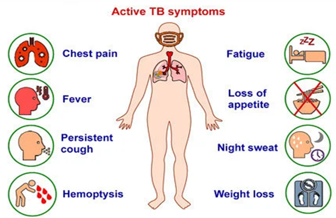 A person having TB may have one or more of the following: